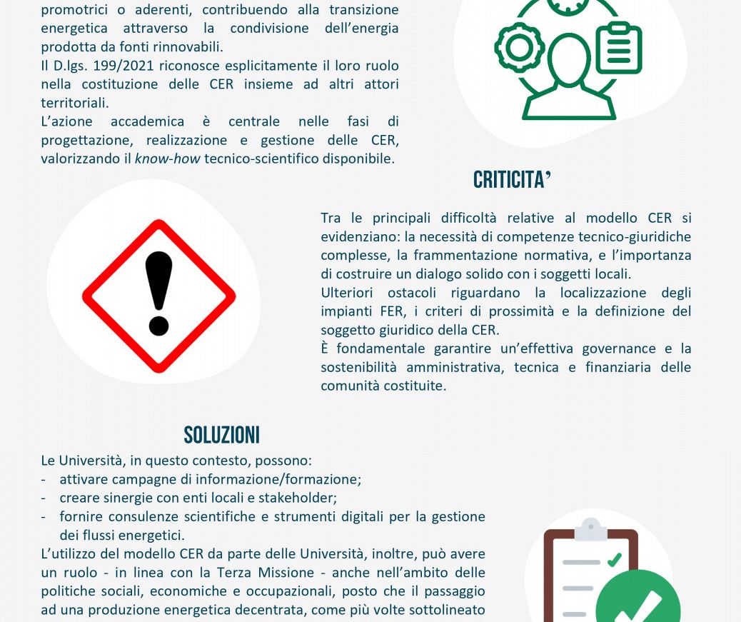 - CER - Comunità Energetiche Rinnovabili - co-coordinato da Alberto Fichera dell'Università degli Studi di Catania e Filippo Bovera del Politecnico di Milano - Obiettivi