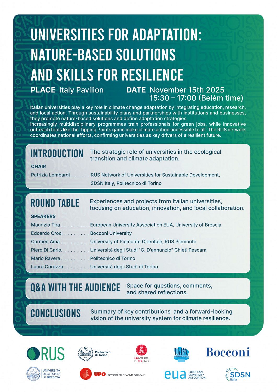 La RUS ha contribuito ai lavori del Padiglione Italia e della COP30 con un evento il 15 novembre 2025.