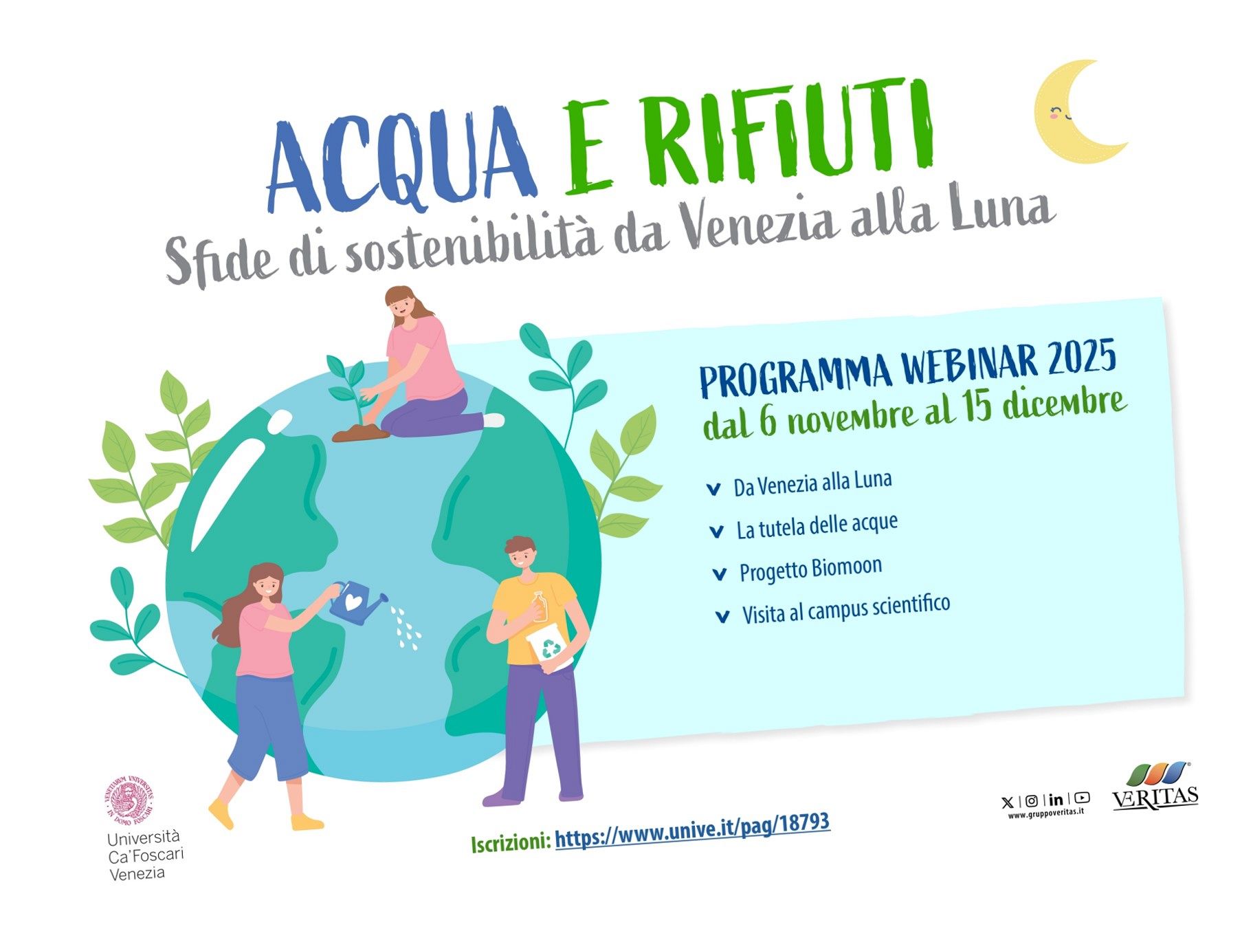 Il focus di quest’anno è l’acqua e la sua relazione con il mondo dei rifiuti, che verrà affrontato durante i webinar online aperta a tutta la comunità cafoscarina e la cittadinanza.