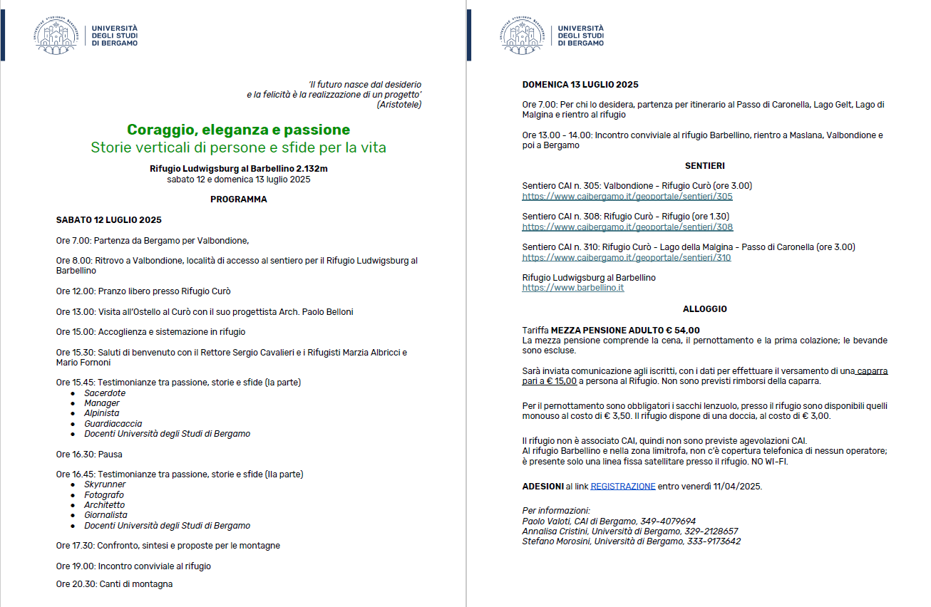 Università degli Studi di Bergamo - "Coraggio, eleganza e passione. Storie verticali di persone e sfide per la vita"