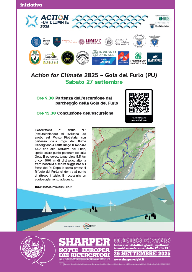 L’Università degli Studi di Urbino Carlo Bo, in collaborazione con gli altri Atenei marchigiani - Università di Camerino, Università degli Studi di Macerata, Università Politecnica delle Marche - e il CAI (Regione Marche e sez. Montefeltro), organizza una escursione ad anello alla Gola del Furlo (PU), sul Monte Pietralata, nella giornata di sabato 27 settembre 2025.